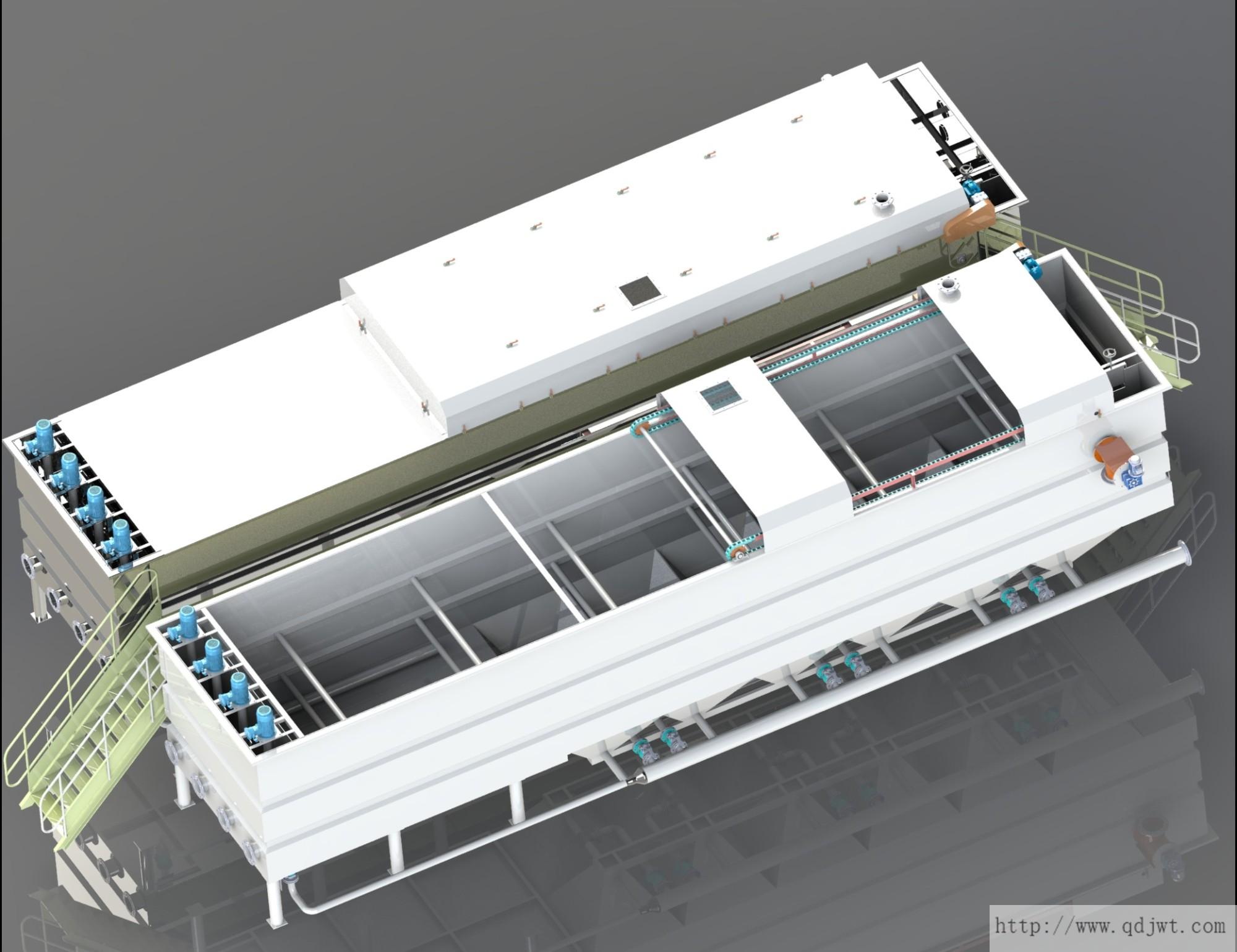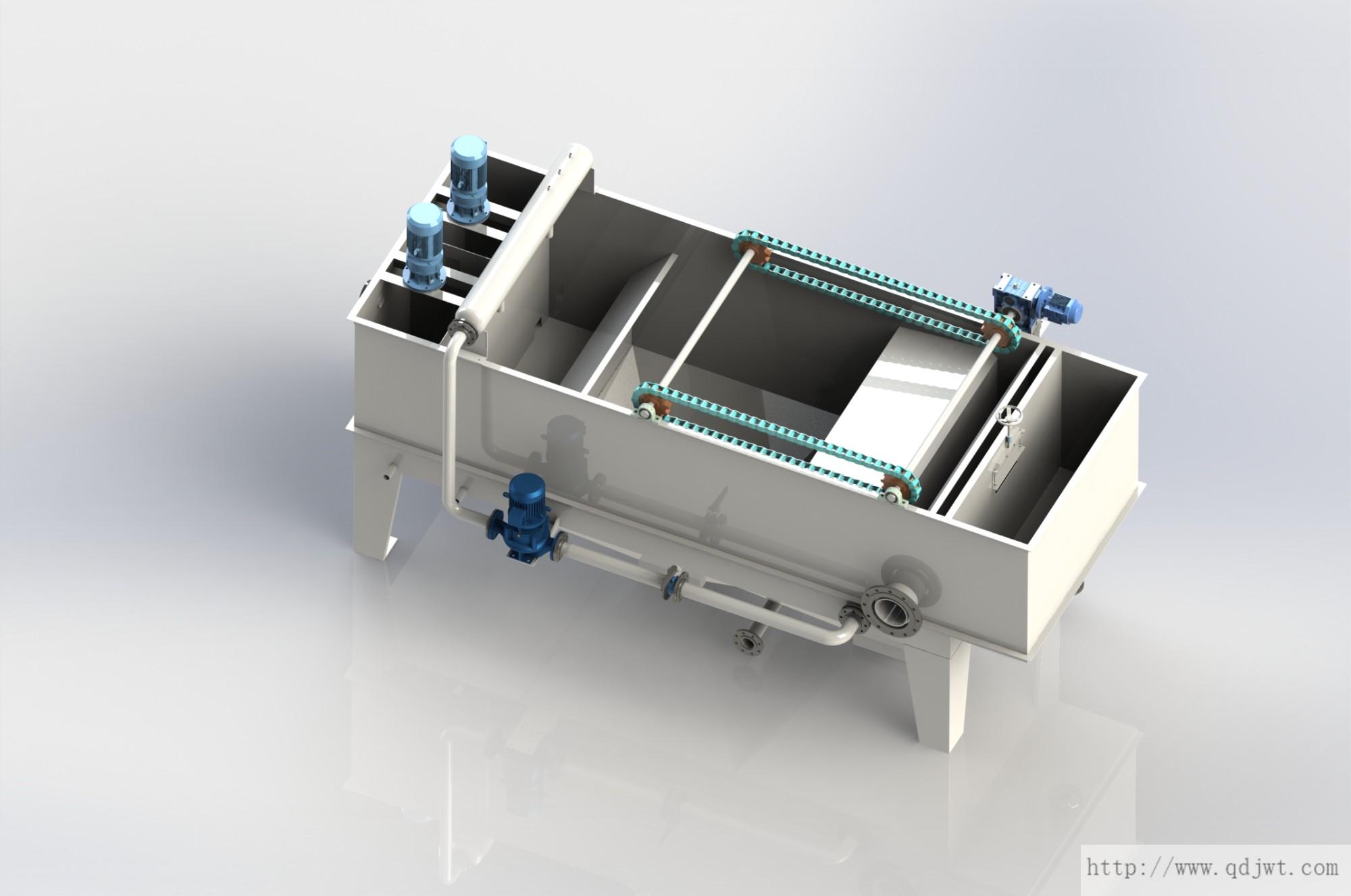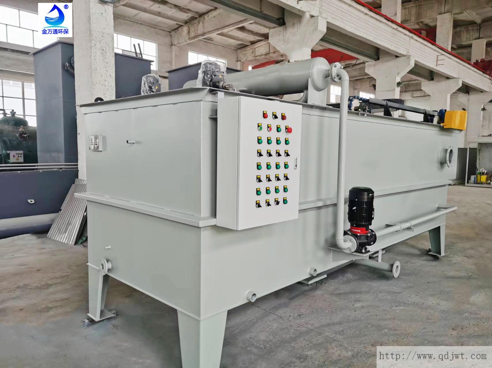 氣浮裝置是在一定條件下將大量空氣溶于水中,形成溶氣水,作為工作介質(zhì),通過(guò)釋放器驟然減壓從而快速釋放,產(chǎn)生大量微細(xì)氣泡粘附于經(jīng)過(guò)混凝反應(yīng)后廢水中的“礬花”上,使絮凝體快速上浮,從而迅速地除去水中的污染物質(zhì),達(dá)到凈水的目的。